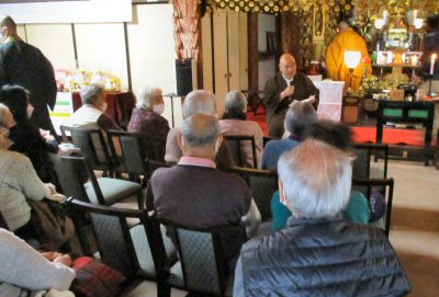法要には横浜磯子金剛院名誉住職、葉山一色玉蔵院、長柄仙光院、小坪仏乗院各住職、沼間光照寺、仙光院、玉蔵院各副住職が出仕。護摩は東昌寺副住職に4月から就任する。