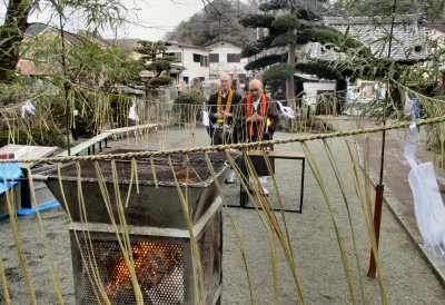 1月20日、午後1時よりお焚き上げ法要が境内特設会場で行われました。古いお札や正月の縁起物が、お焚き上げ供養されました。