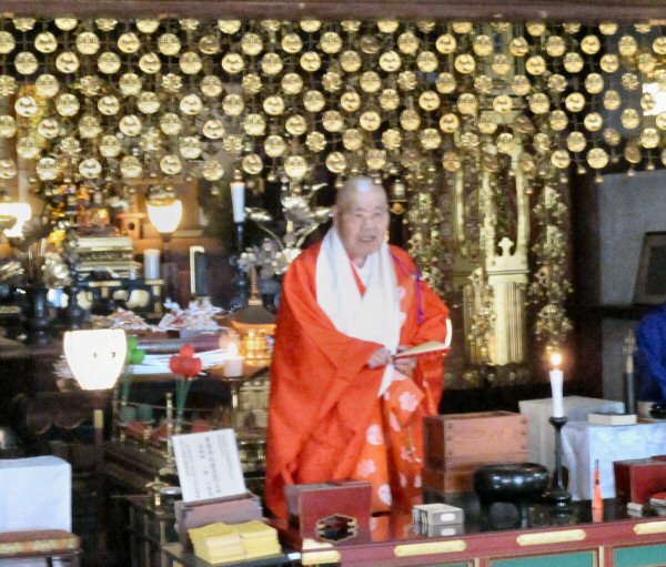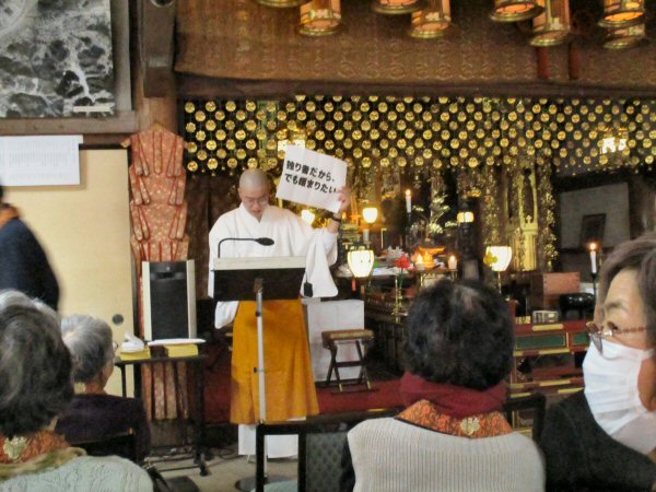 法会後、新年の法話をする住職。