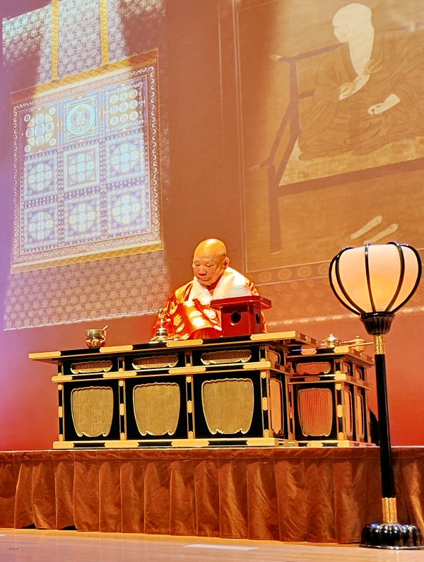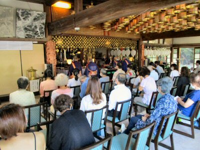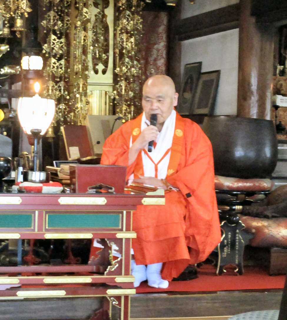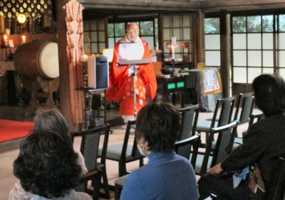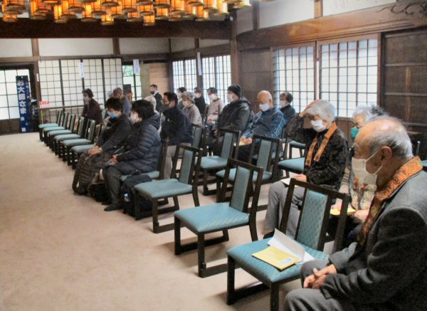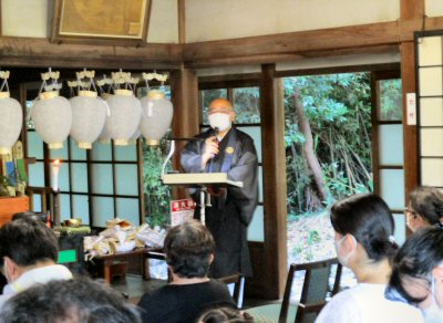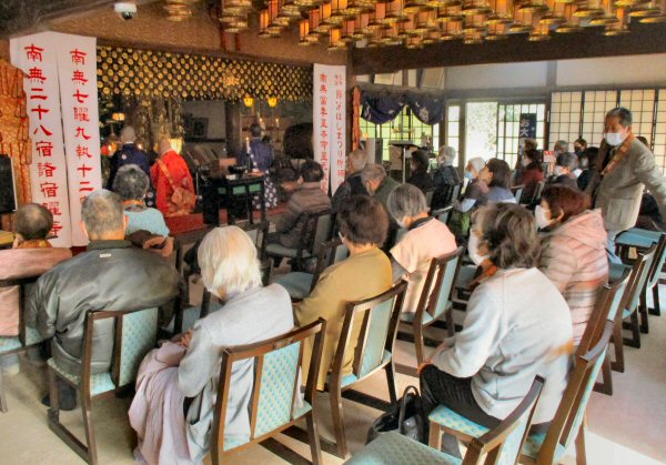 法会に先立ち、星まつりについて法話をする副住職。