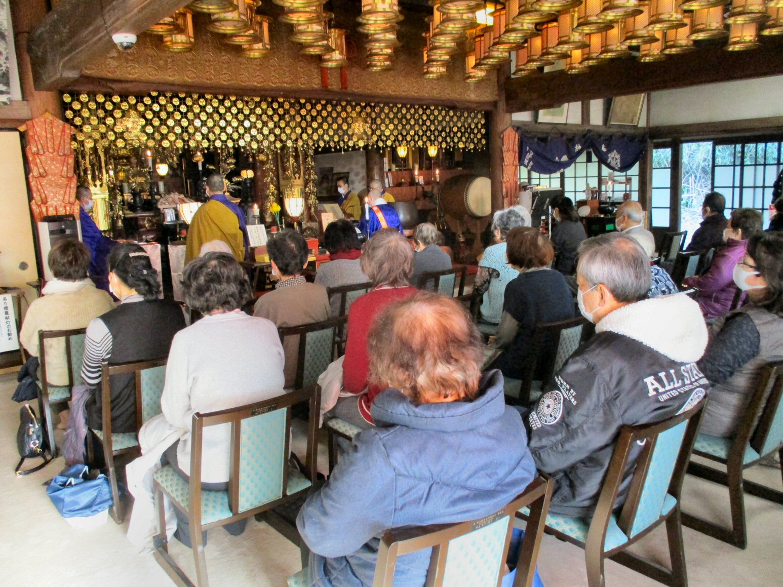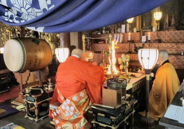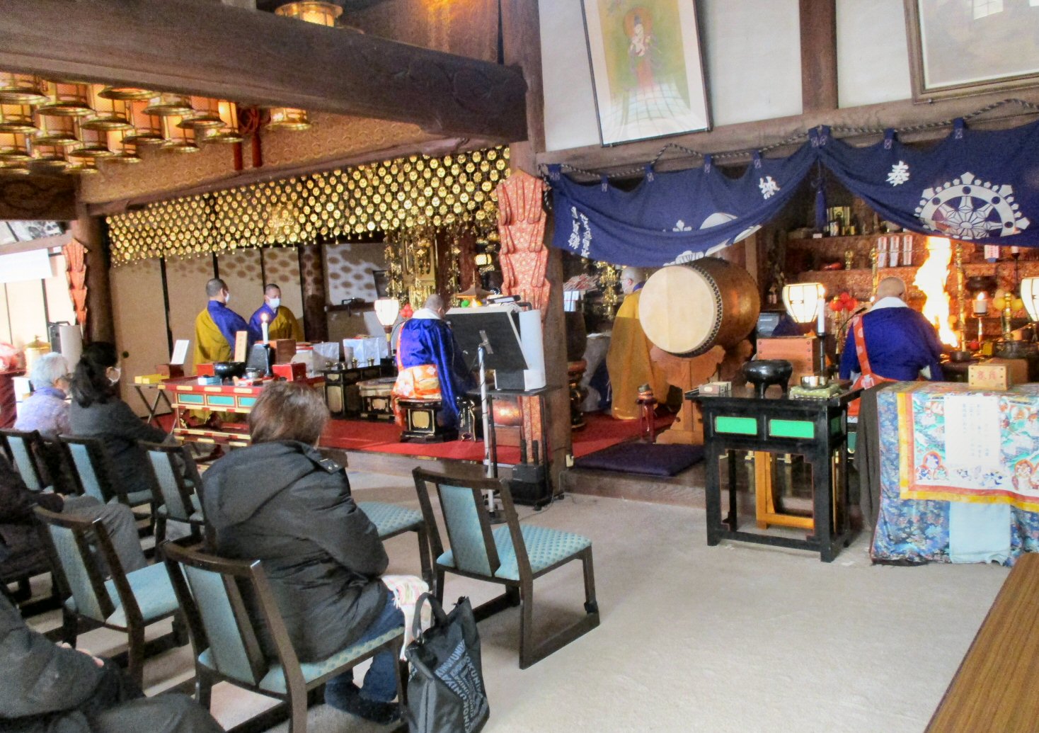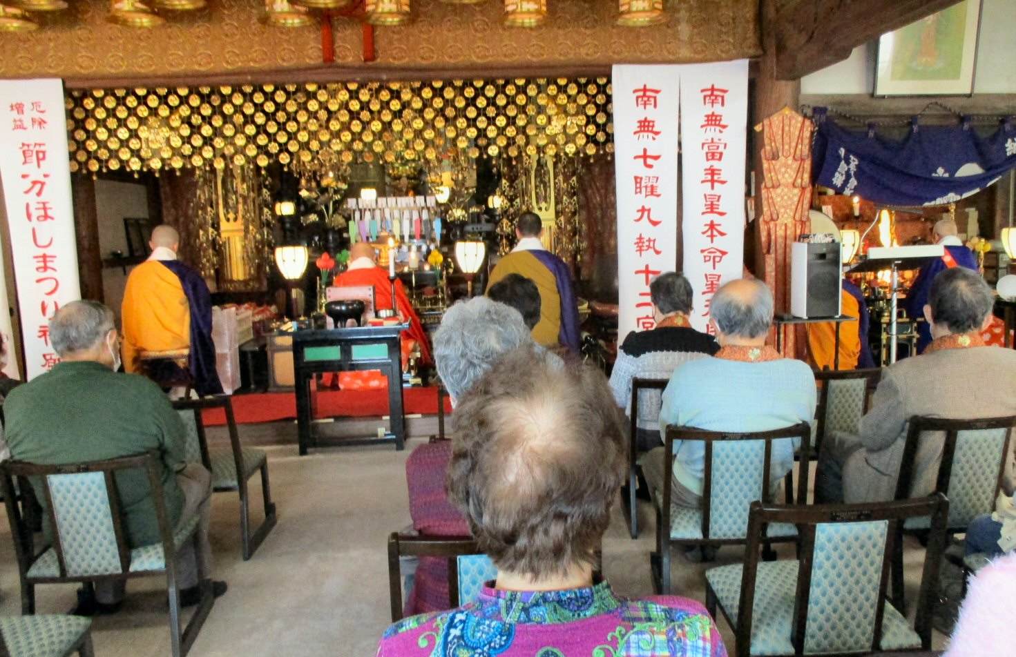 北斗曼荼羅をご本尊とし、星まつりの特別な荘厳がなされた堂内で厳粛にお勤め。