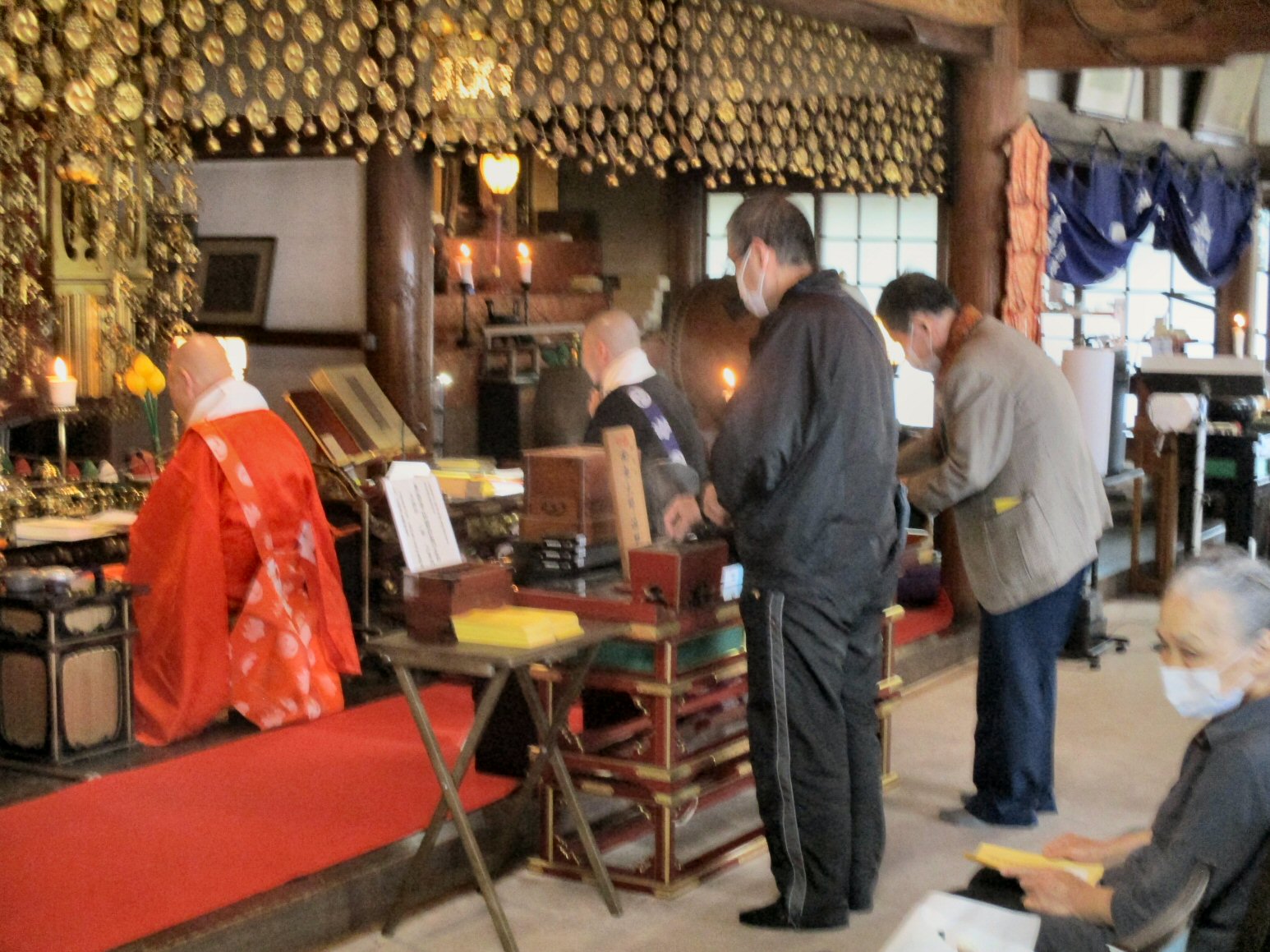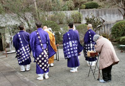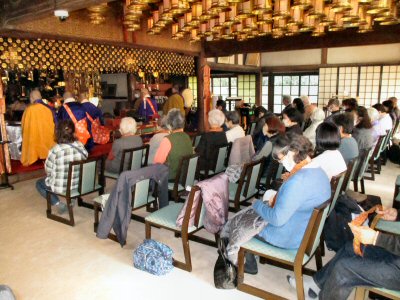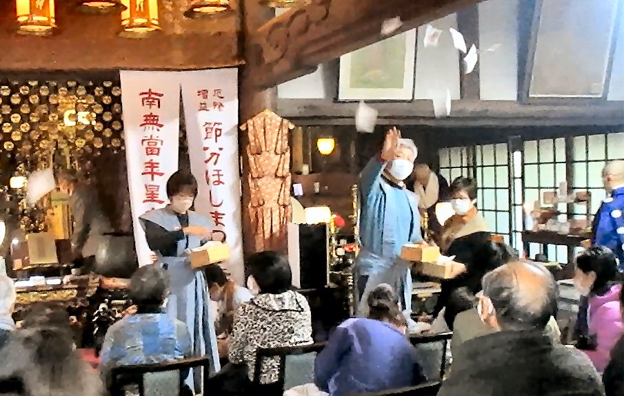 恒例の「追儺豆まき」がはじまりました。住職、葉山玉蔵院様、小坪仏乗院様が最初のひと投げを行います。湘南保育園の子供さんたちも来てくれました。