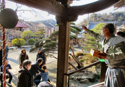 本年は、池子区長様、湘南保育園園長様、逗子警察署池子駐在様、当山役員様に裃姿で豆まき頂きました。