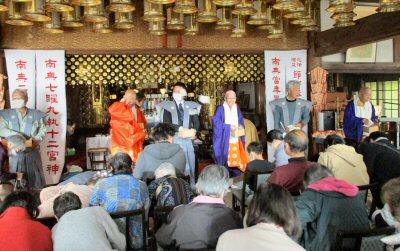 追儺豆まきは住職、玉蔵院住職、生井自治会池子区長。池子駐在所岩田所長、職方小林石工店小林五郎社長が出仕