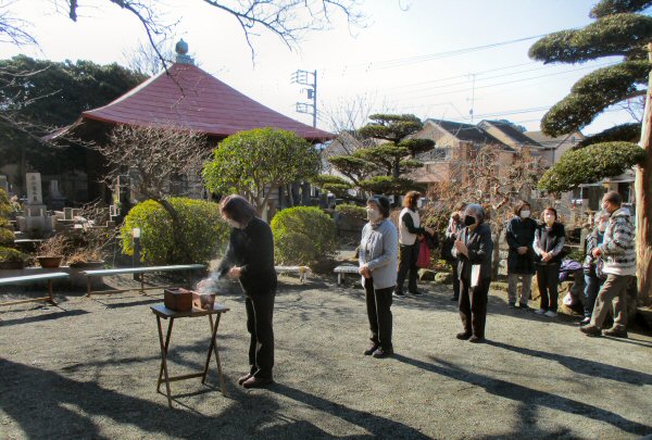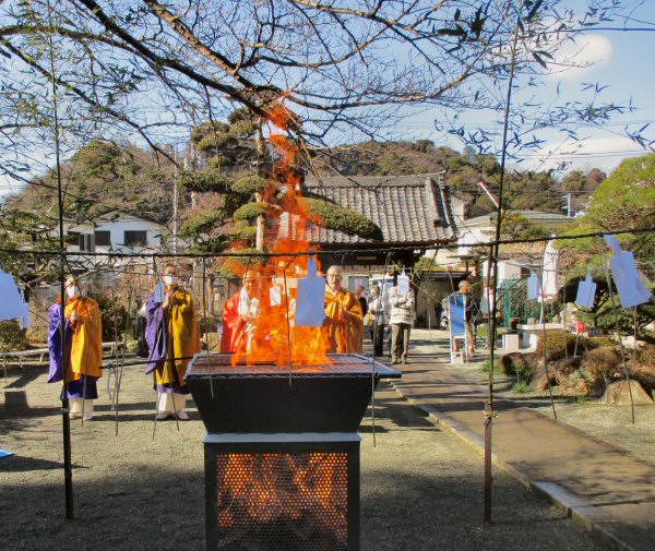 1月20日、午後1時よりお焚き上げ法要が境内特設会場で行われました。古いお札や正月の縁起物を、お焚き上げ供養いたしました。