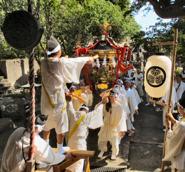 出立する神輿を門前にてお見送りしました