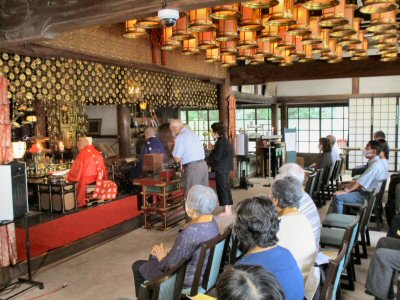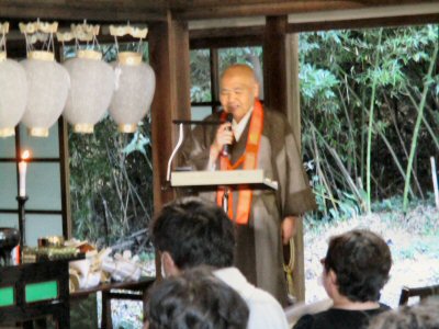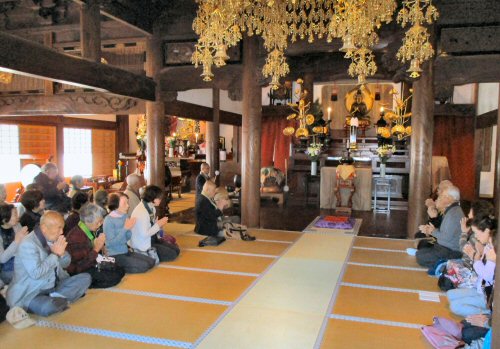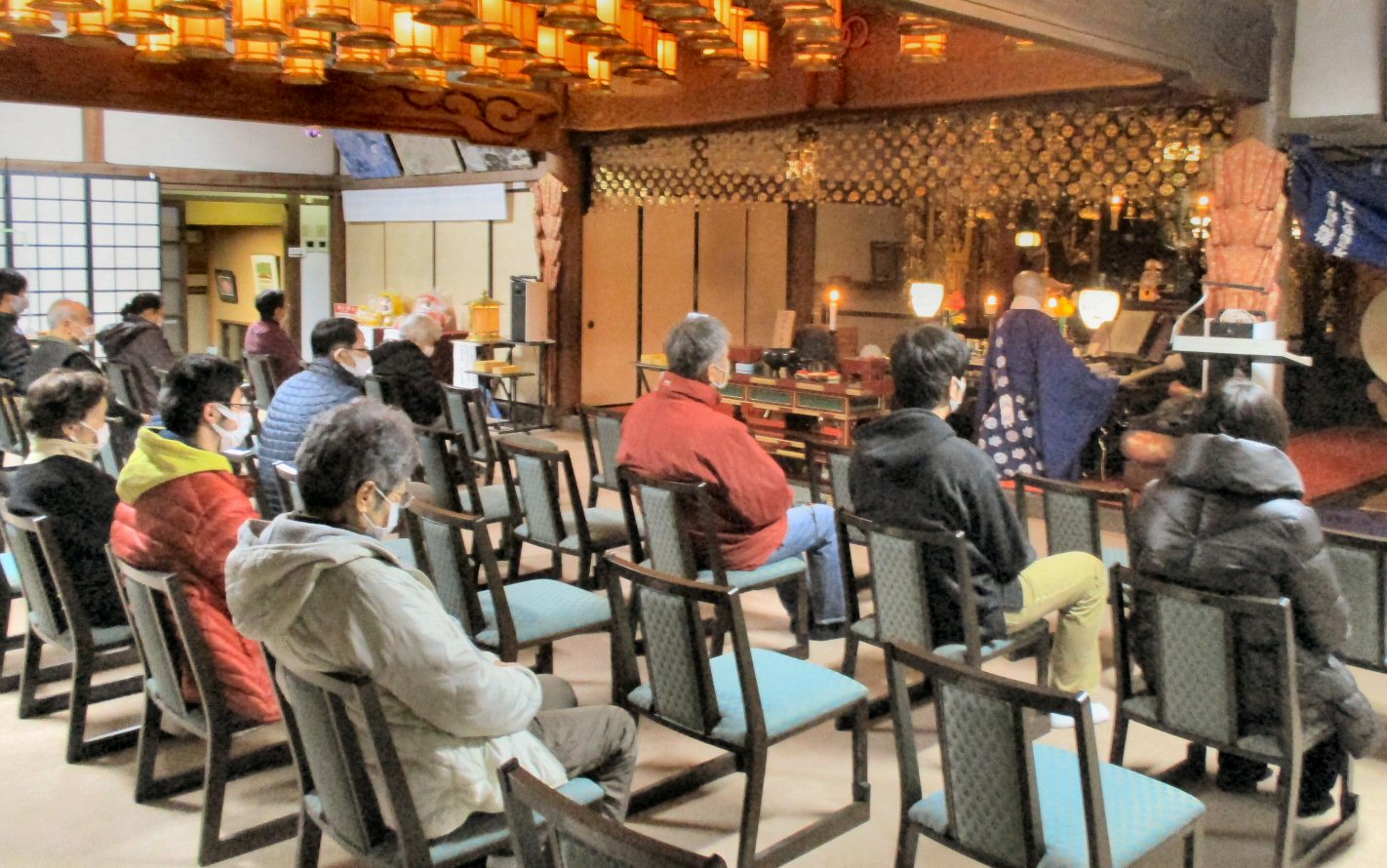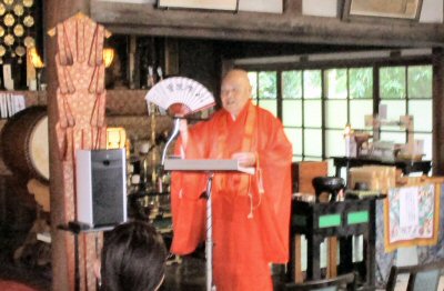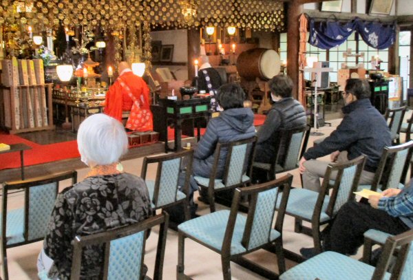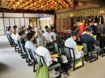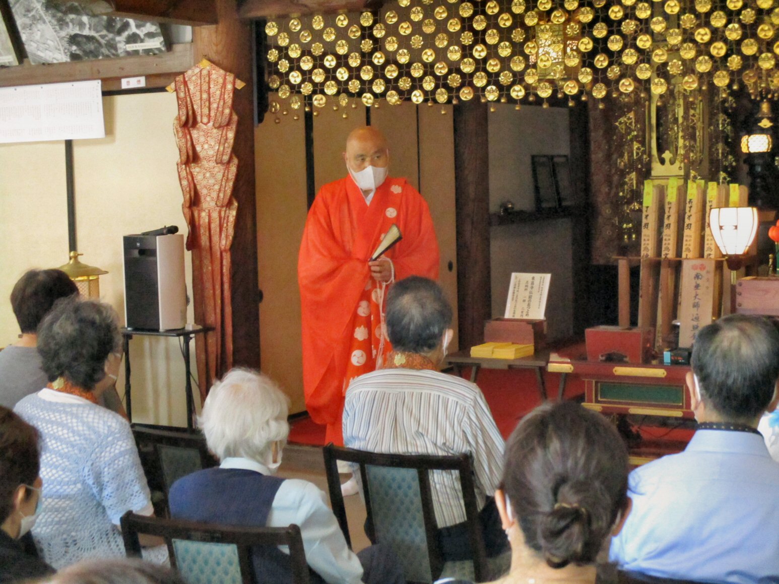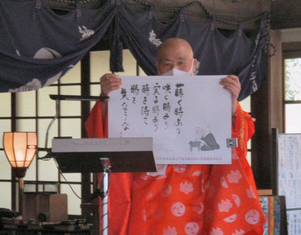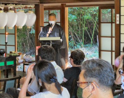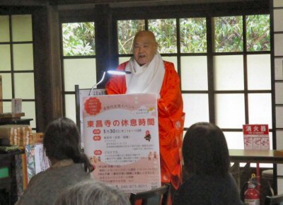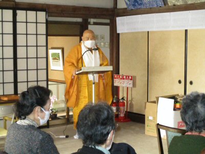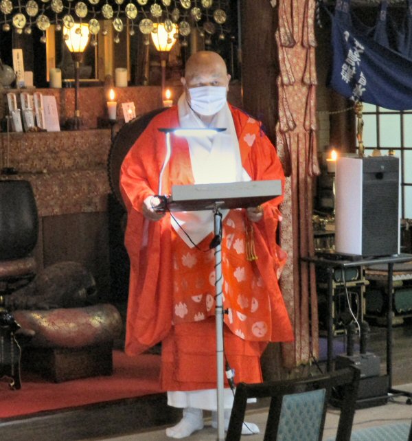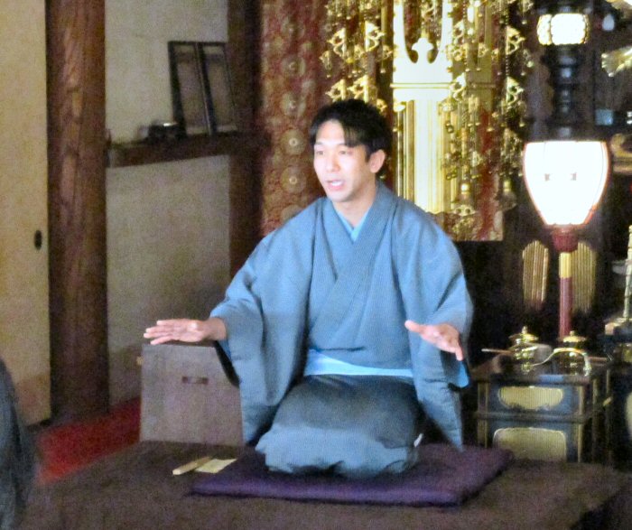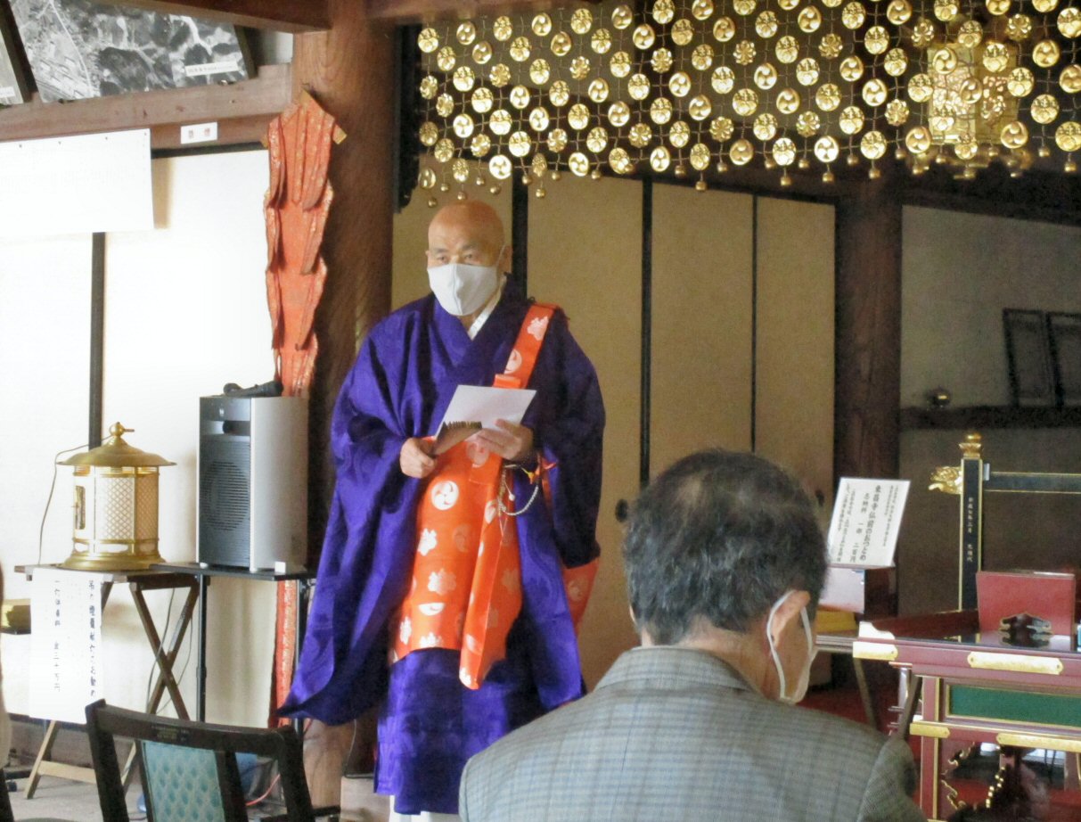 法会に先立ち、星まつりについて法話をする副住職。