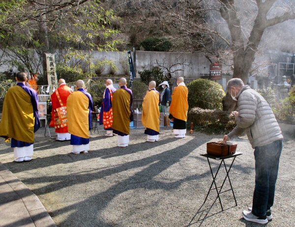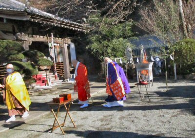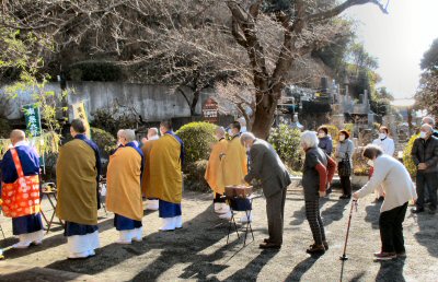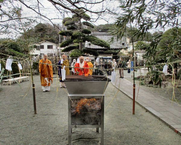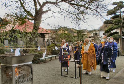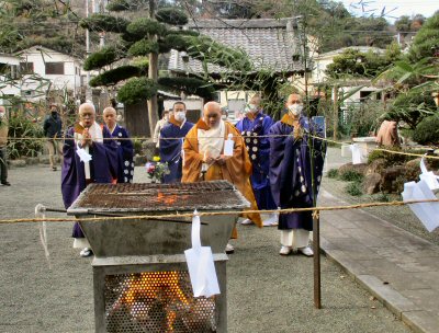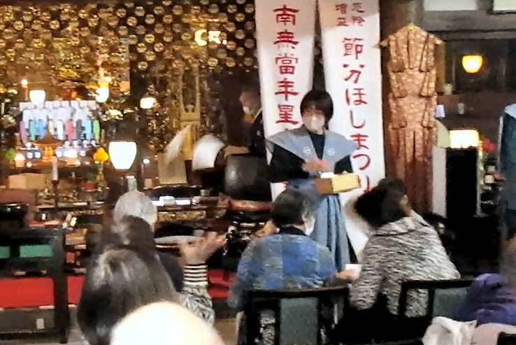 恒例の「追儺豆まき」がはじまりました。住職、葉山玉蔵院様、小坪仏乗院様が最初のひと投げを行います。湘南保育園の子供さんたちも来てくれました。