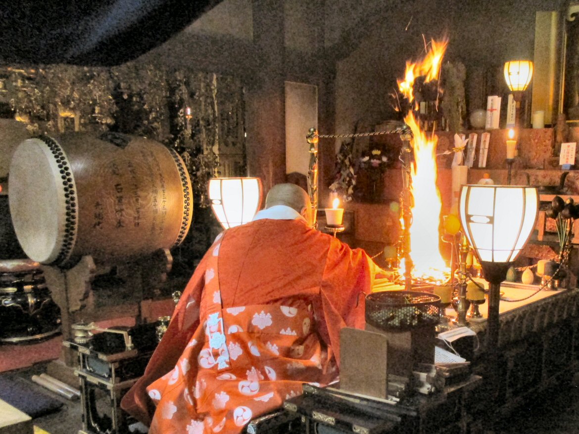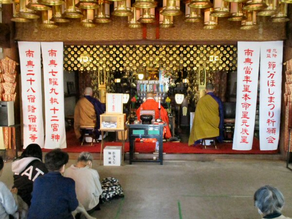 北斗曼荼羅をご本尊とし、星まつりの特別な荘厳がなされた堂内で厳粛にお勤め。