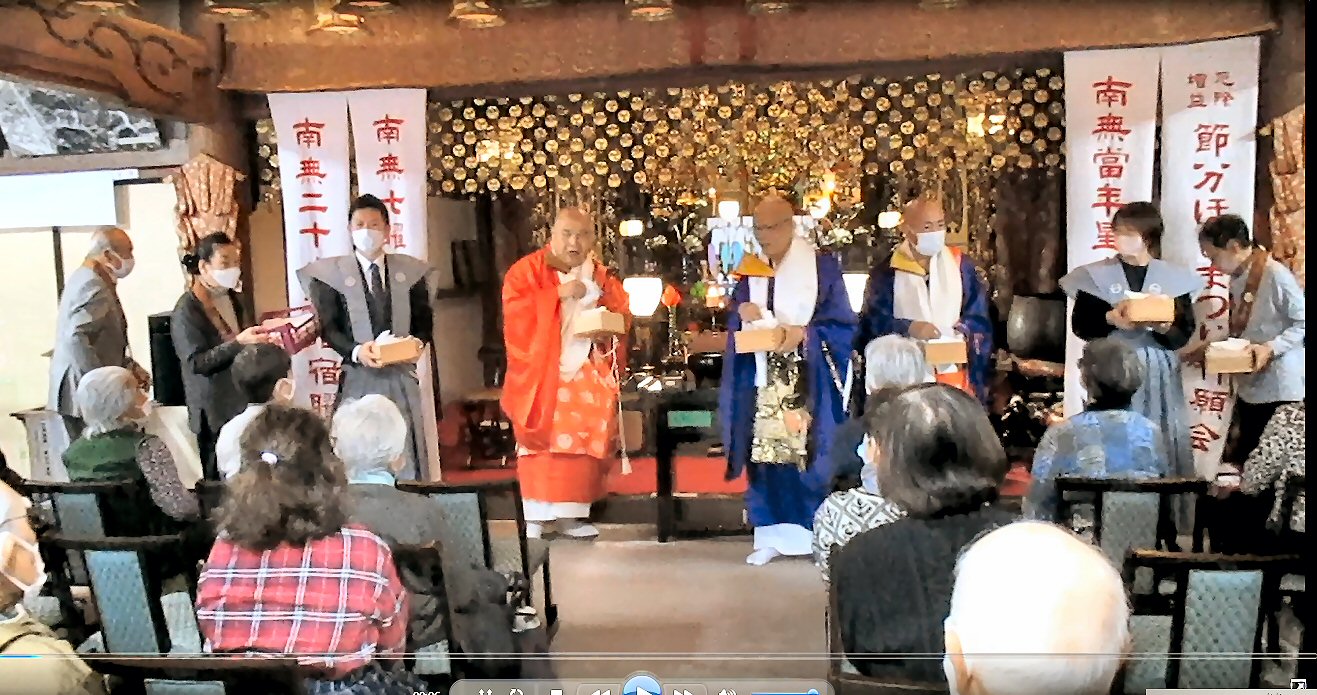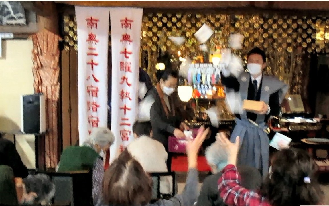 本年は、池子区長様、湘南保育園園長様、逗子警察署池子駐在様、当山役員様に裃姿で豆まき頂きました。
